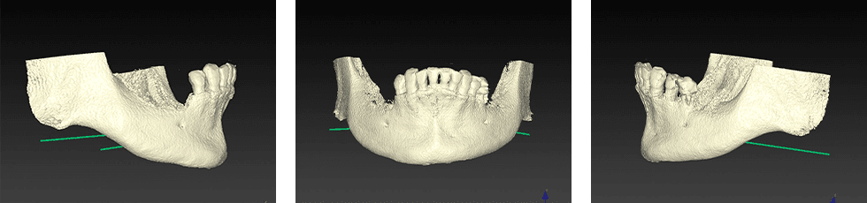 まずは、お口の型取りとCTをお撮りいたします。CTによりお口の顎の骨の状態と歯の状態をデジタルデータとして記録します。型取りをさせてもらったお口の型をスキャンさせてもらい、歯茎の状態と歯の状態をデジタルデータとして記録します。