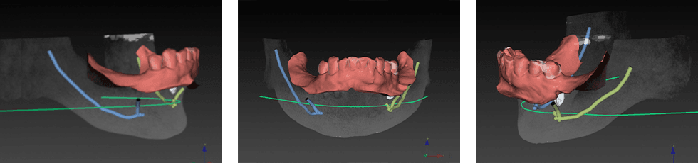パソコン画面上で決定されたインプラントの位置をお口の中で再現して手術ができるように、サージカルステントといわれるものを画面上で設計し、メーカーにオーダーしてもらいます。