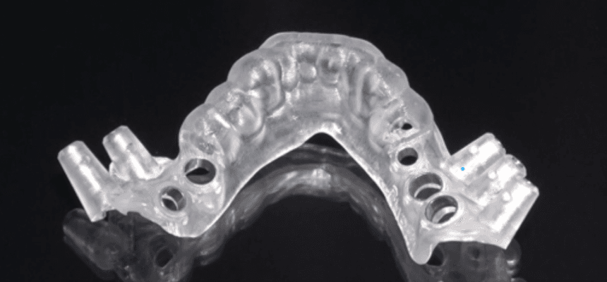 サージカルステント出来上がったサージカルステント。これを患者さんのお口に装着して手術することによって完全にパソコン上のインプラントの位置を再現できて手術することができます。